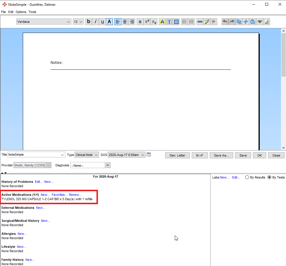 As a workaround, if the prescriptions are created same day, there is a section at the bottom of the note window that shows you the medical history relevant to the date of service. You can copy (CTRL+C) and paste (CTRL+V) into the body of your note from here.