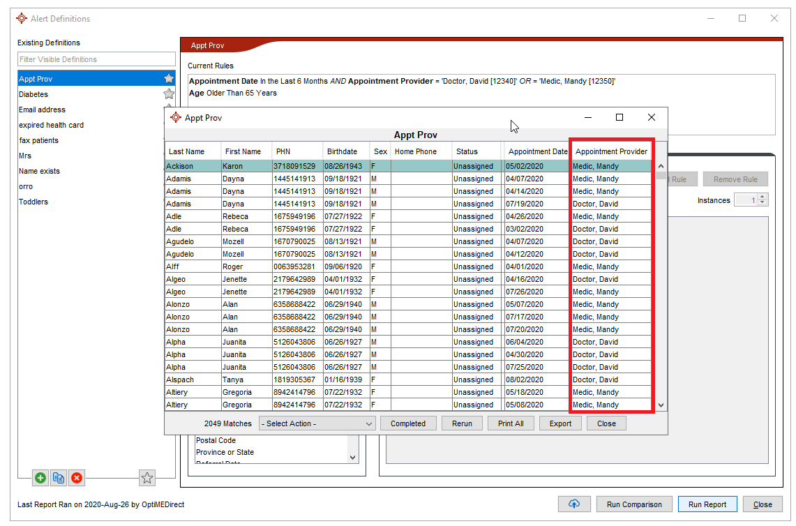 Extra query criteria/output column: appointment provider