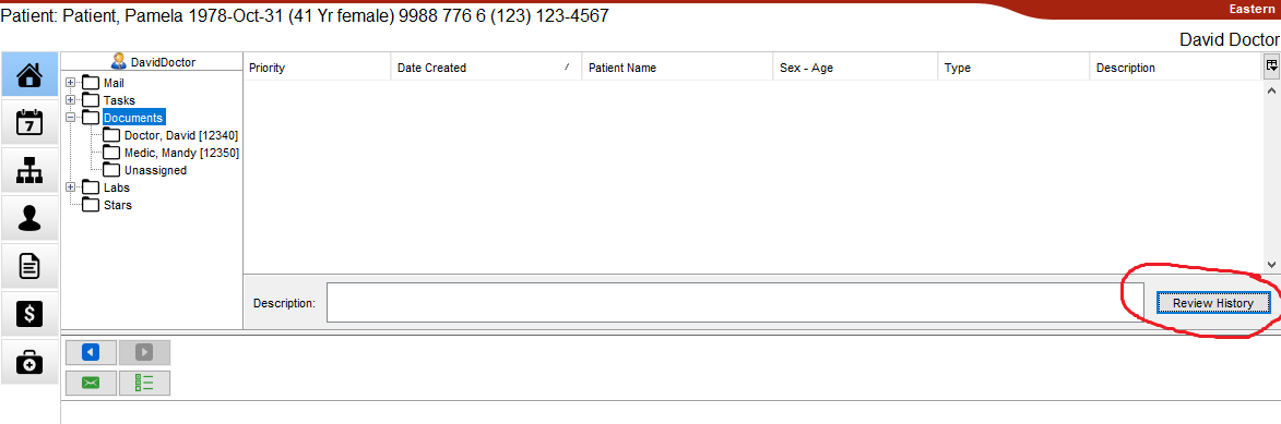 The Review History will show all reviewed documents, regardless of where in the program they were 'reviewed' (chart, documents section, home, etc).