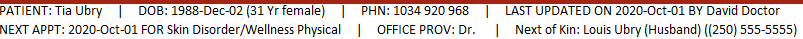 As a workflow alternative, Next of Kin can be added to the Patient Status Bar.