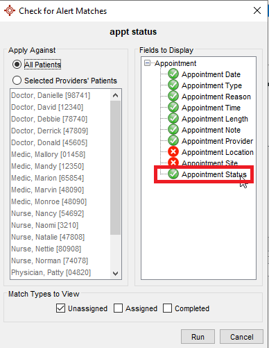 Nearly all components of an appointment are reportable in the query builder except the appointment status. This would be very helpful as we've made several customized status choices and would like to be able to pull the data/info.