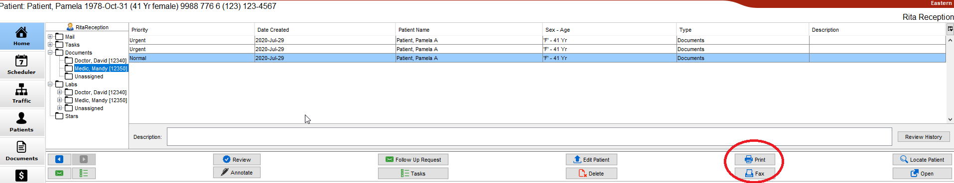 In the Home section (inbox) for both Documents and Labs there are Print and Fax options. Please see the attached images.