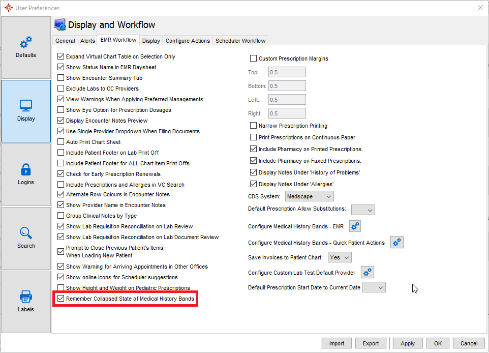 Ensure you have the user preferences to "Remember Collapsed State of Medical History Bands" enabled (Accuro Menu > File > User Preferences > Display > EMR Workflow).