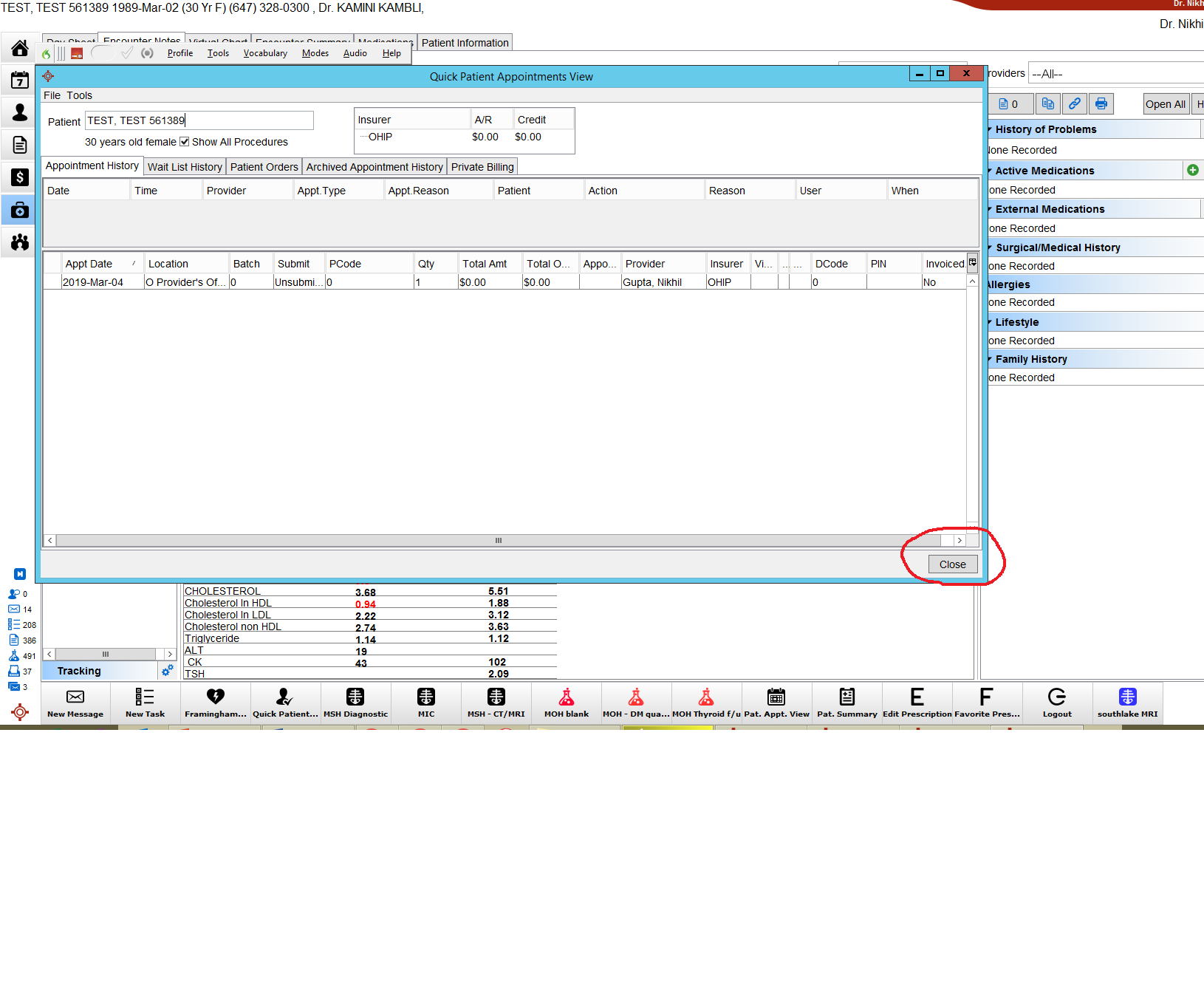 I use F4 to open the Quick Patient Appointment View to view previous patient appointments and billing, in order to submit my current bill.