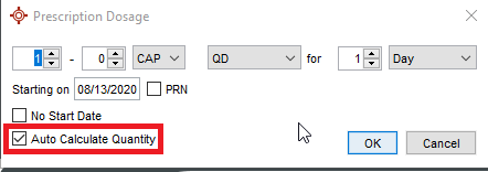Ensure that the 'Auto Calculate Quantity' option is ticked in the Prescription Dosage window, and it will do that for you.