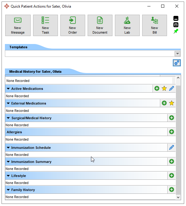 Currently that would need to be done in the Medications tab of the EMR, in the Encounter Notes tab via the Medical History band for Allergies OR via the alternative I suggested above. It is a keyboard shortcut called the "Quick Patient Actions". If you hit CTRL+F10 on your keyboard (from any area of Accuro), a separate window will pop-up. It can be expanded, or minimized, and will be refreshed with each loaded patient, but it allows you to complete quick actions like creating tasks and bills, and managing medical history entries.