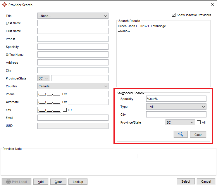 Searching by specialty in the provider tab is only functional if all the specialties are entered exactly the same way for every provider. In our case, hundreds. I agree that it would be of great benefit to have the provincial College upload the data somehow.