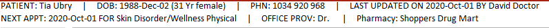 I would suggest adding default pharmacy and email address to the Patient Status bar at the top of Accuro, which would allow you to see these details from any screen, not just the scheduler.
