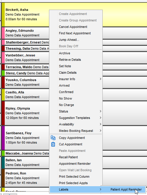 I would love to be able to have the patient's name print on the label and BOLD the appointment date and time so it stands out more