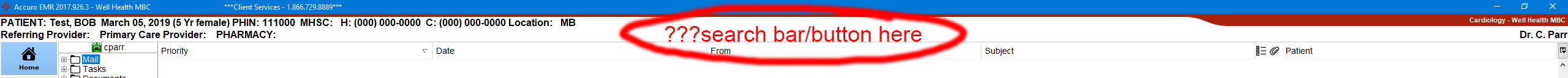 Presently, search only works in the EMR sections "Encounter Notes", "Chronic Conditions", "Virtual Chart" and "Medications", the Patients tab, and the Scheduler tab. To search a patient from my Home tab, I have to navigate into EMR then switch from Day Sheet to Encounter Notes then press F1 then search the patient then navigate back. Also, the search bar is in a different location for each of these sections, breaking continuity in the user interface. If there is one globally active patient that persists throughout sections (as there should be), then there should be a fixed search function that remains in the same location in all areas of Accuro. You already have a demographics tab that shows the globally active selected patient. Would it be too hard to just add a search function there that remained available to use across any tab/section of Accuro? There's a ton of empty space at the top beside the globally selected patient.