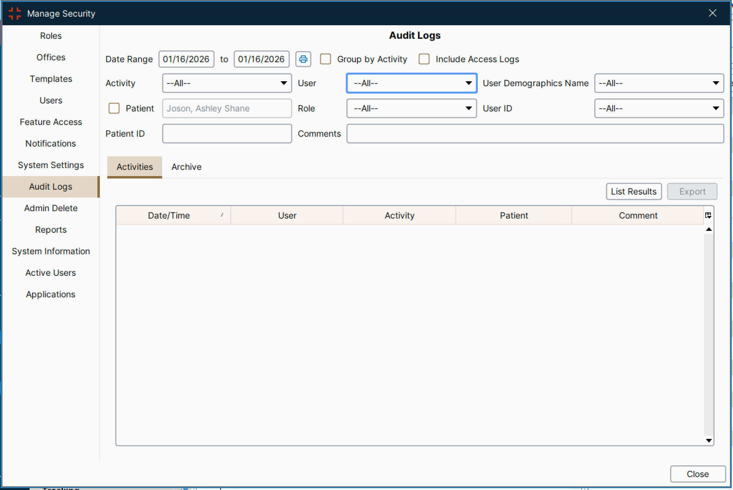 Under Audit Log / User, currently the dropdown list has all the users past and present. I've been using Accuro since 2012. I have many inactive users. Would be nice if I can hide the inactive users from this dropdown list.